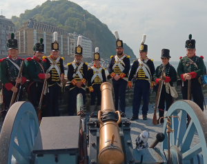 Desde allí comenzamos un breve pero intenso cañoneo contra las posiciones francesas ubicadas en el monte Urgull. Mientras la columna aliada marchaba para ocupar sus posiciones en el espigón, de donde saldríamos todos hacia la plaza Zuloaga a reconocimiento que las sociedades realizarían este año al Banco de Alimentos de Gipuzkoa por su gran labor.