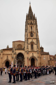 Finalizado el evento, y entre aplausos del público, hubo acercamiento de hermandad entre ambos bandos y nos fuimos a degustar el menú que la Cofradía del Desarme había preparado con cariño para todos nosotros: garbanzos con bacalao y espinacas, callos al estilo Oviedo y arroz con leche; como no, acompañado de vino. Poco a poco, los grupos nos fuimos despidiendo los unos de los otros, prometiendo vernos dentro de dos años, en una nueva cita con El Desarme de Oviedo.