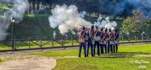 Las cuatro piezas de artillería posicionadas en lugares estratégicos. Las tropas a pie hicieron su entrada en el campo de batalla y se colocaron según la estrategia que sus mandos habían planteado.